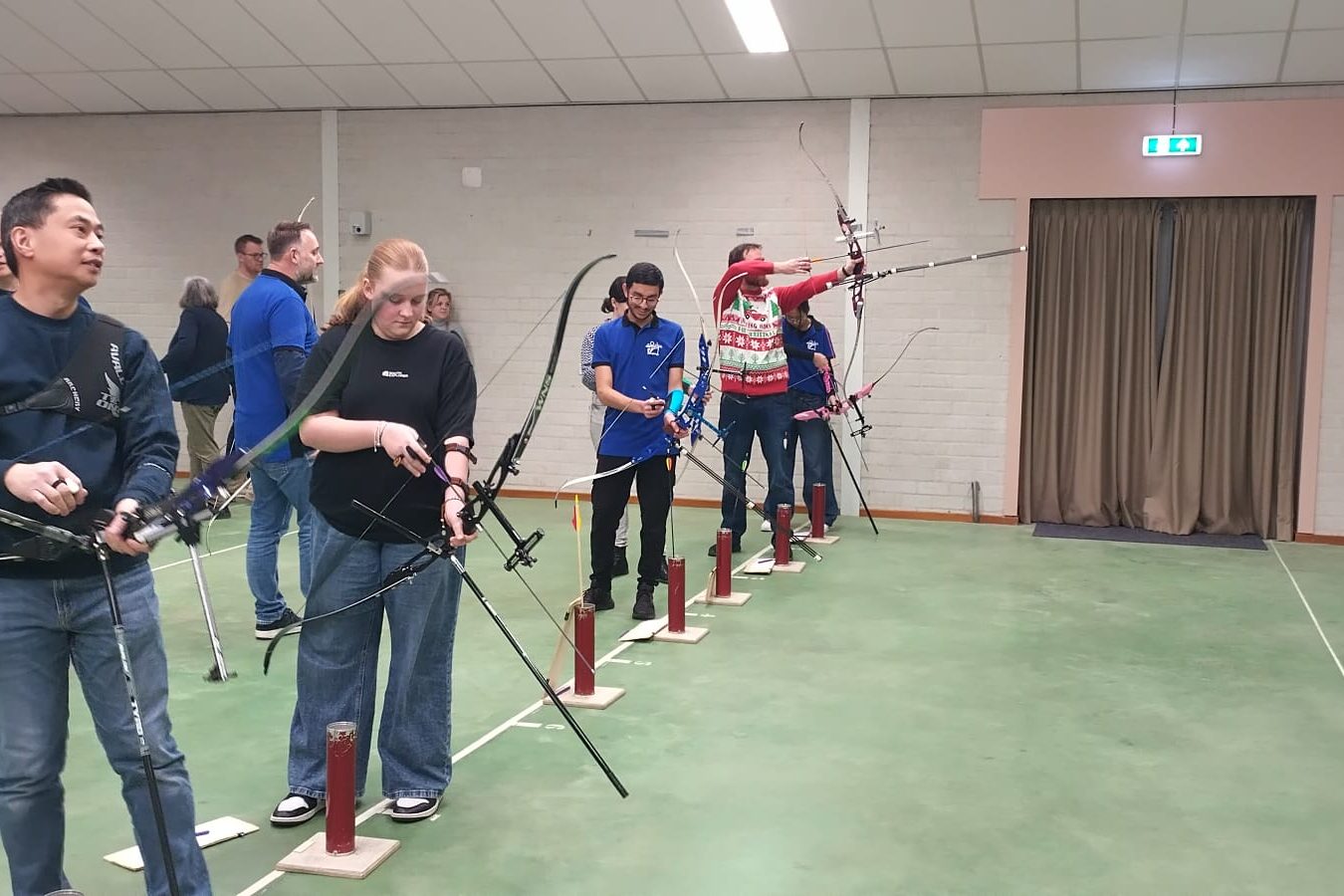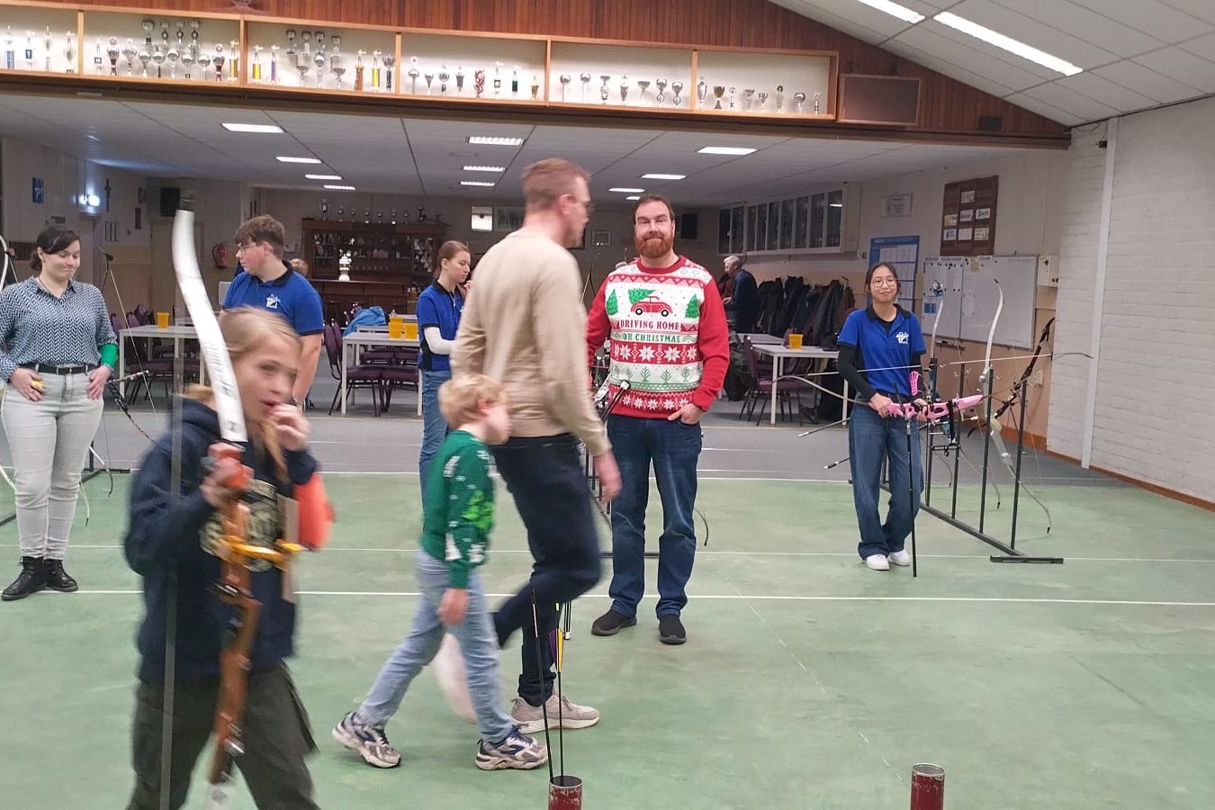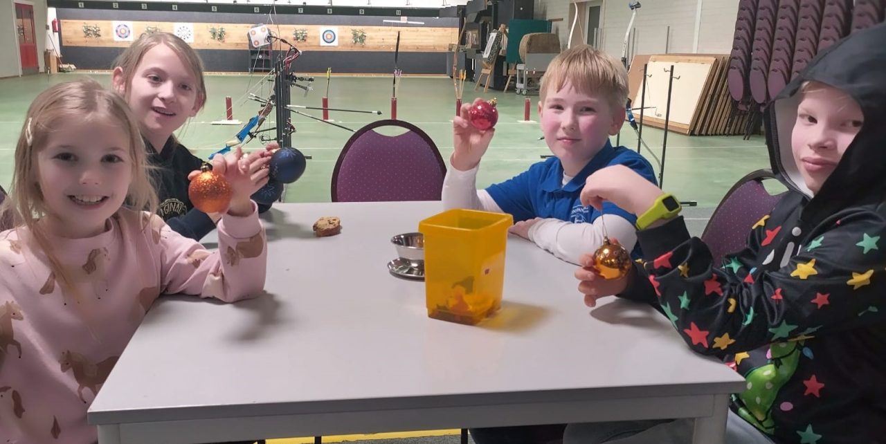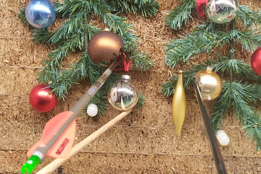 Wat thuis zekr niet mag, mag 1x per jaar bij deze hadboogactiviteit; Kerstballen schieten. Het gejuich was groot als er weer eentje geraakt wordt. De sfeer zat er goed in.